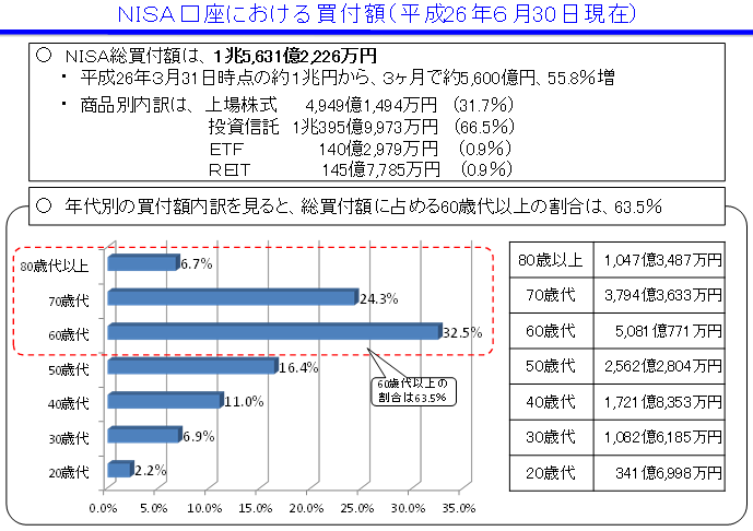 こうした中、制度導入から6ヶ月後の6月末時点で、NISAの総口座数は約727万件となり、総買付額は1兆5,600億円に上るなど、NISAの普及は着実に進んでいると考えられます。