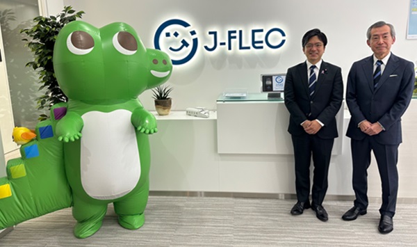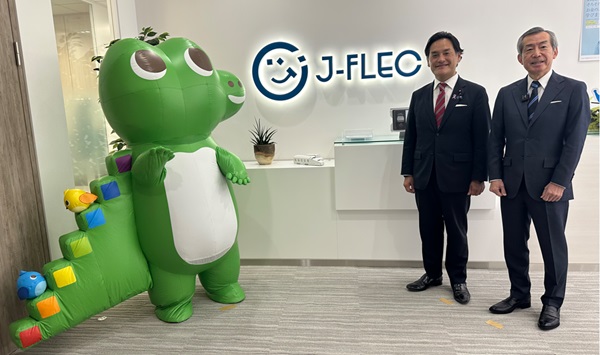 写真:J-FLEC安藤理事長(右)、金子政務官(中央)との記念撮影 |