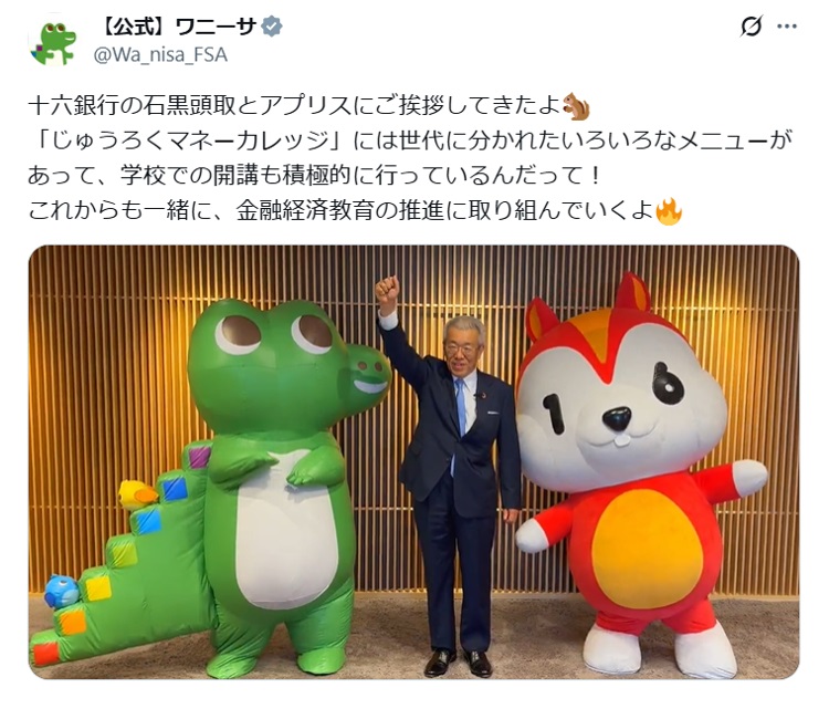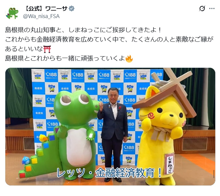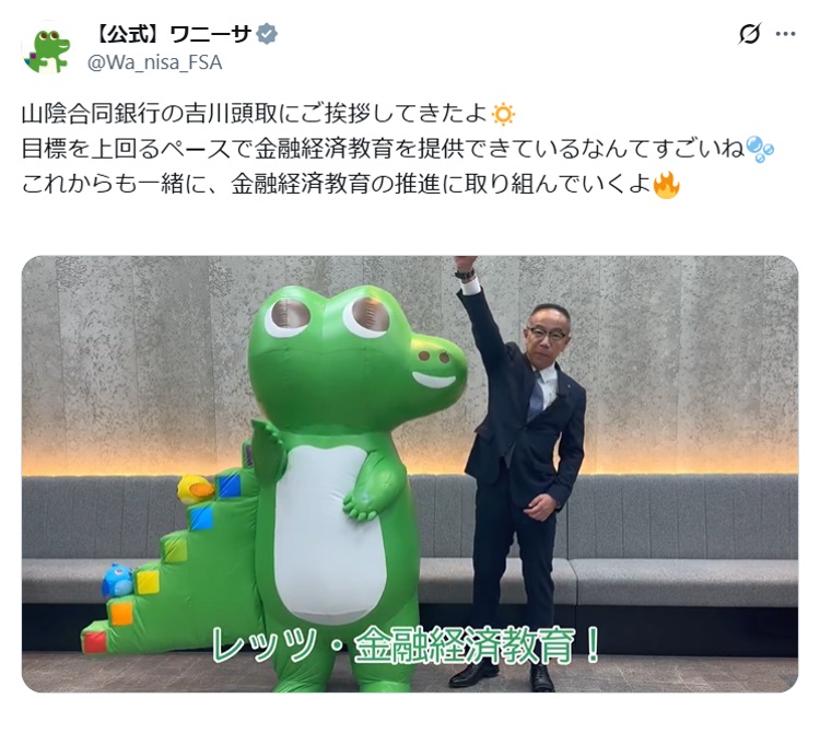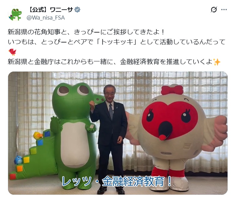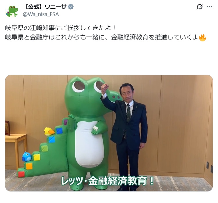 前回に引き続き、 ワニー参事官(ワニーサ)が全国の知事や金融関係者のもとへ出向き、金融経済教育のさらなる充実に向けた連携強化をお願いしております!