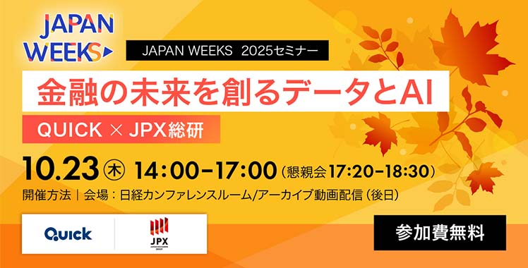 日本の金融をデータの力で支えてきたJPX総研とQUICKが、AIとデータの力で金融をどう変革していくのか、金融データの未来をどう拓くのか、その可能性と展望を一緒に探りましょう。