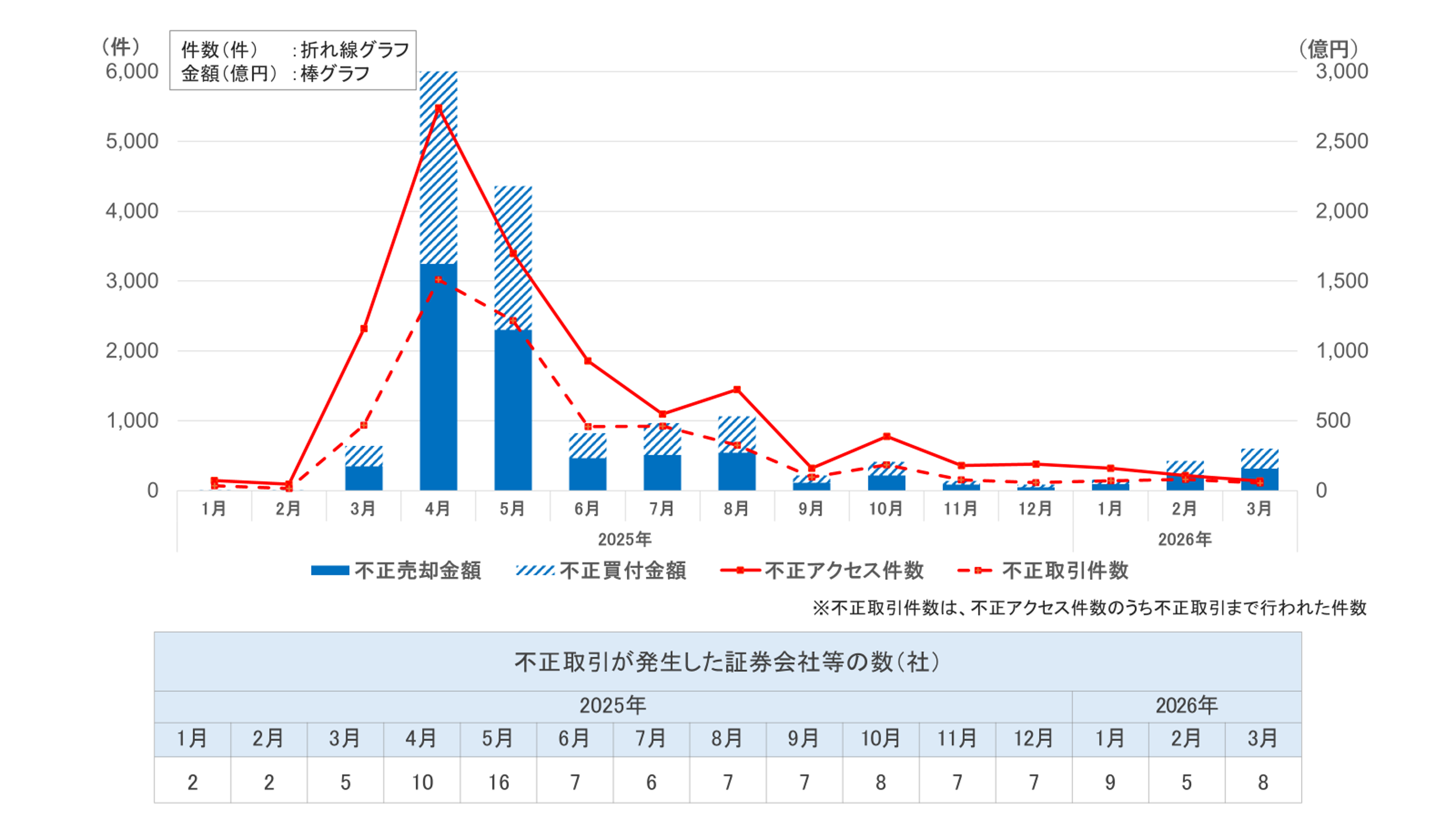 ※1 金融庁が現時点で各証券会社等から報告を受けた発生日ベースの数値(暫定値)であり、まだ判明していない不正アクセスや不正取引が存在する可能性があることに留意。