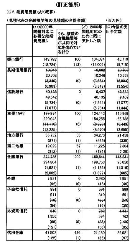 コンピューター2000年問題対応に関する報告の集計表等のデータの訂正について
